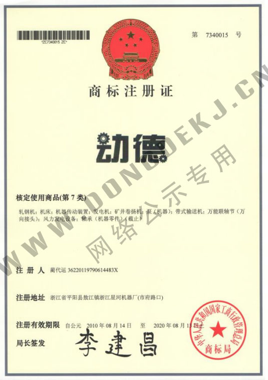 當(dāng)前位置:首頁(yè) > 關(guān)于我們 > 榮譽(yù)資質(zhì) > 動(dòng)德商標(biāo)注冊(cè)證書
