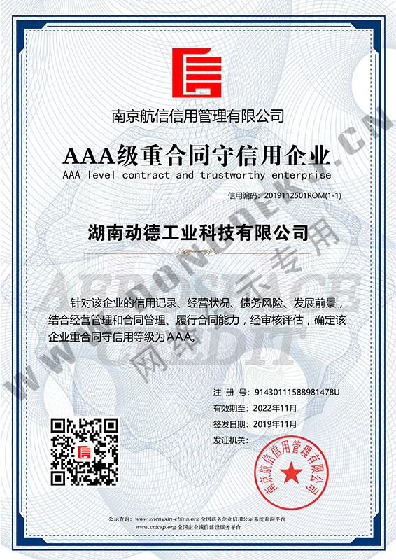 > 榮譽資質(zhì) > AAA級重合同守信用企業(yè)